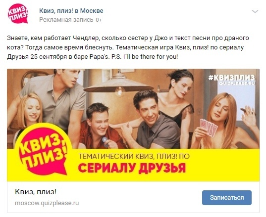 Сейчас на рынке квизов происходит большой БУМ — все делают тематические квизы в Москве и за ее пределами. Организаторы вдруг осознали ценность таргетинга и….
