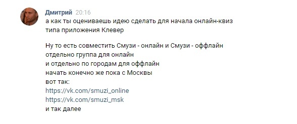 Люди голосовали, мы им писали в личные сообщения. А там уже объясняли, что такое квиз и регистрировали людей на мероприятие.